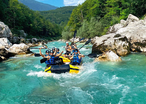 Our rafting tours are perfect for friends, families, couples, and groups looking for a safe and fun outdoor experience near Bovec.