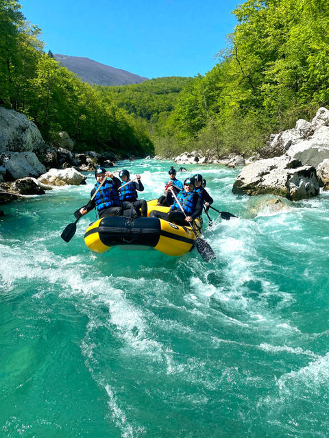 Experience the thrill of rafting on the emerald waters of the Soča River, one of the most beautiful rivers in Europe. Surrounded by the stunning peaks of the Soča Valley, this adventure combines excitement, nature, and unforgettable scenery.